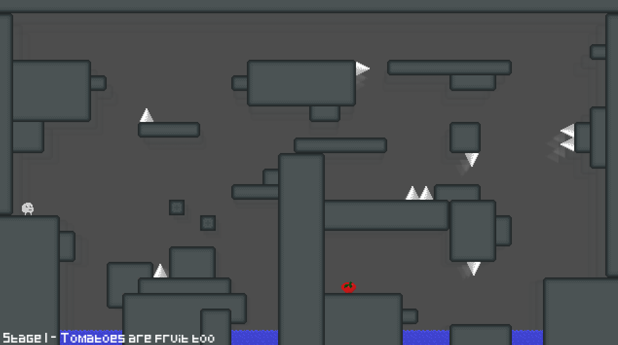 You control Javu, a little grey blob, on his quest to acquire his favourite fruit: a tomato. All you need to do is beat a single level. Easy peasy.